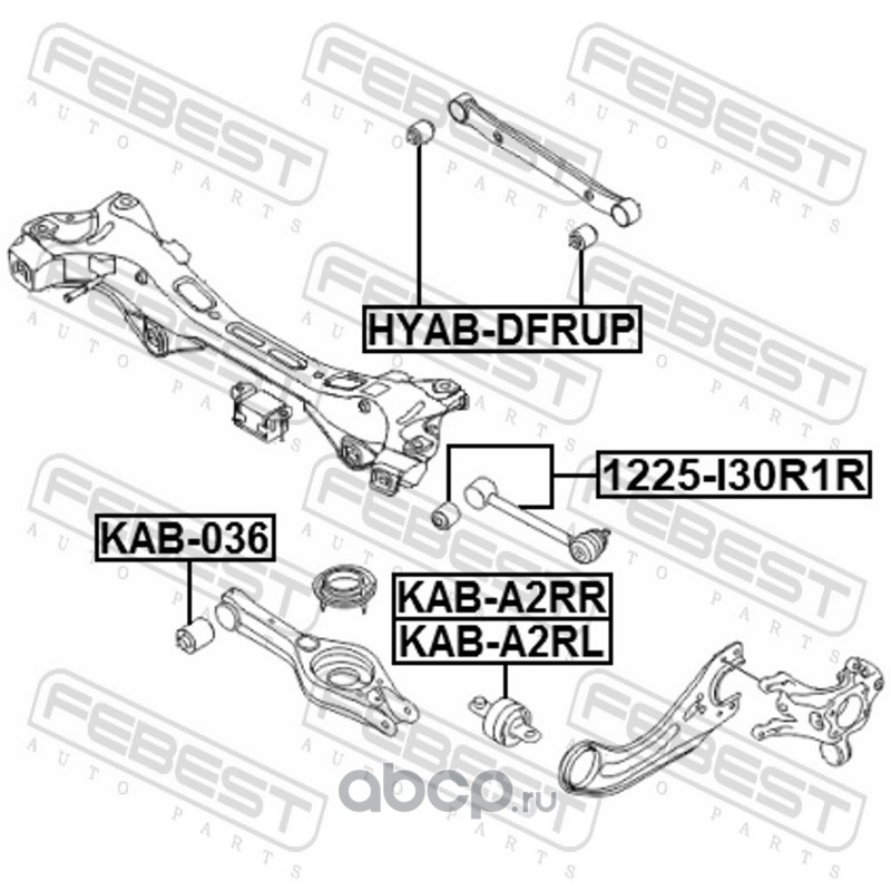 All World Cars - продажа Сайлентблок заднего поперечного рычага артикул KAB036 по всей России и странах СНГ. Развитая сеть представительств с быстрой доставкой товаров бренда Febest и гарантией выгодной цены. Покупая в AWC товар Febest каталожный номер KAB036 вы бережете свое время, нервы и деньги.