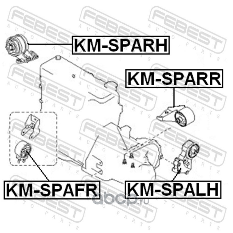 All World Cars - продажа Подушка двигателя левая артикул KMSPALH по всей России и странах СНГ. Развитая сеть представительств с быстрой доставкой товаров бренда Febest и гарантией выгодной цены. Покупая в AWC товар Febest каталожный номер KMSPALH вы бережете свое время, нервы и деньги.