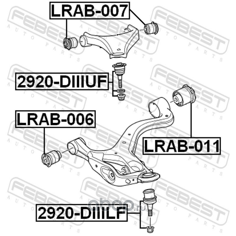 All World Cars - продажа САЙЛЕНТБЛОК ПЕРЕДНЕГО НИЖНЕГО РЫЧАГА LRAB-006 артикул LRAB006 по всей России и странах СНГ. Развитая сеть представительств с быстрой доставкой товаров бренда Febest и гарантией выгодной цены. Покупая в AWC товар Febest каталожный номер LRAB006 вы бережете свое время, нервы и деньги.