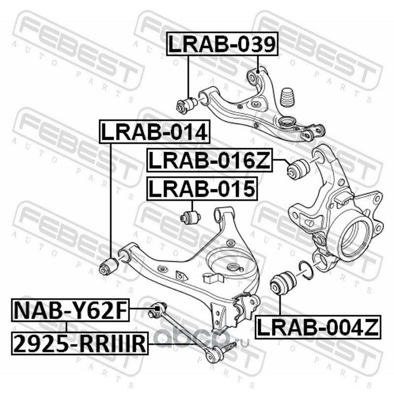 All World Cars - продажа Сайлентблок нижнего рычага подвески | зад прав/лев | артикул LRAB014 по всей России и странах СНГ. Развитая сеть представительств с быстрой доставкой товаров бренда Febest и гарантией выгодной цены. Покупая в AWC товар Febest каталожный номер LRAB014 вы бережете свое время, нервы и деньги.