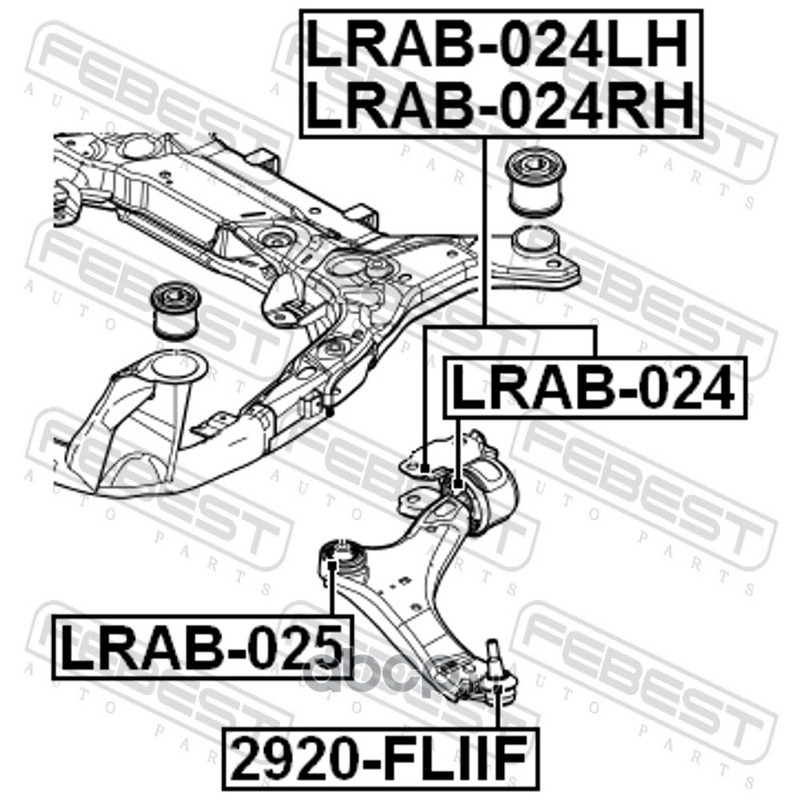 All World Cars - продажа Сайленблок задний переднего левого рычага (гидравлический) артикул LRAB024LH по всей России и странах СНГ. Развитая сеть представительств с быстрой доставкой товаров бренда Febest и гарантией выгодной цены. Покупая в AWC товар Febest каталожный номер LRAB024LH вы бережете свое время, нервы и деньги.