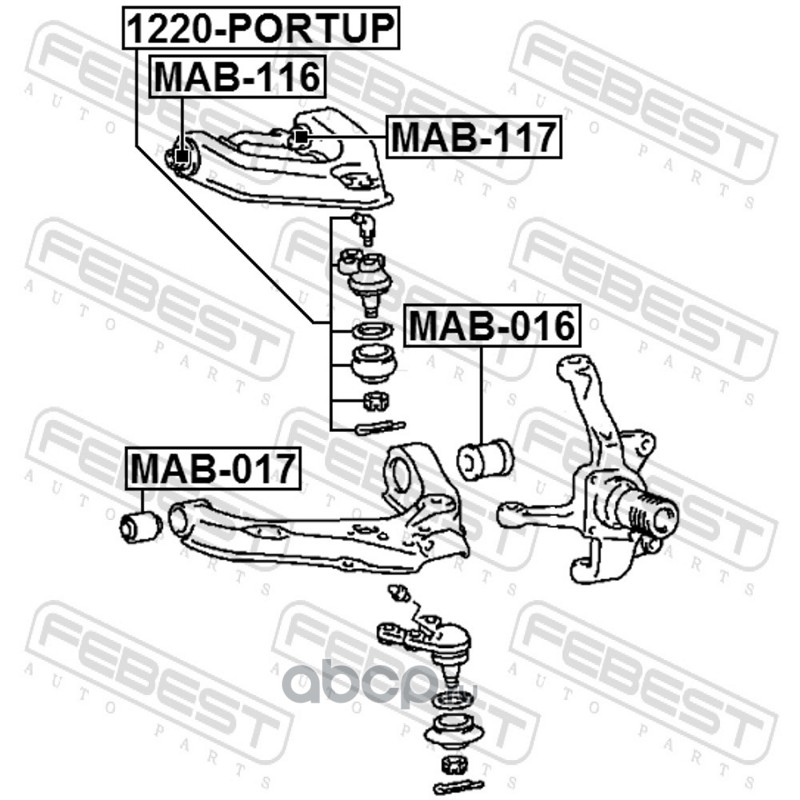 All World Cars - продажа Сайлентблок передний нижнего рычага артикул MAB017 по всей России и странах СНГ. Развитая сеть представительств с быстрой доставкой товаров бренда Febest и гарантией выгодной цены. Покупая в AWC товар Febest каталожный номер MAB017 вы бережете свое время, нервы и деньги.