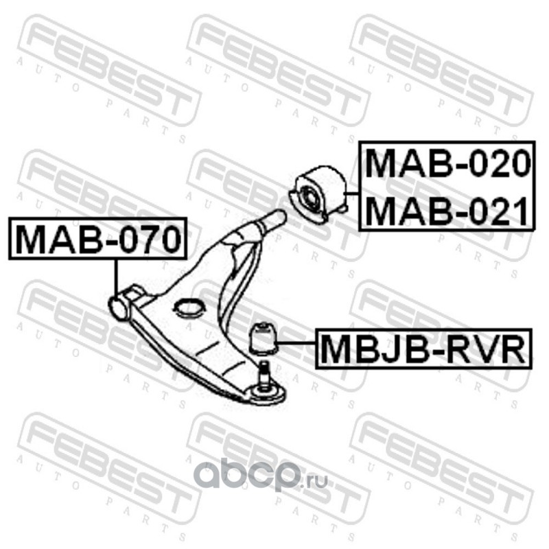 All World Cars - продажа Сайлентблок переднего рычага заднего левого артикул MAB021 по всей России и странах СНГ. Развитая сеть представительств с быстрой доставкой товаров бренда Febest и гарантией выгодной цены. Покупая в AWC товар Febest каталожный номер MAB021 вы бережете свое время, нервы и деньги.