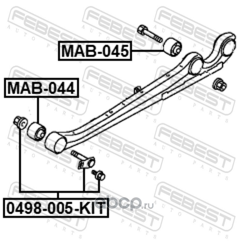 All World Cars - продажа Сайлентблок заднего продольного рычага артикул MAB044 по всей России и странах СНГ. Развитая сеть представительств с быстрой доставкой товаров бренда Febest и гарантией выгодной цены. Покупая в AWC товар Febest каталожный номер MAB044 вы бережете свое время, нервы и деньги.