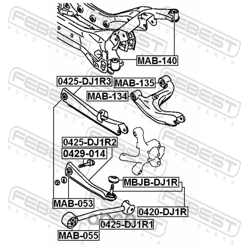 All World Cars - продажа Сайлентблок задней подвески артикул MAB053 по всей России и странах СНГ. Развитая сеть представительств с быстрой доставкой товаров бренда Febest и гарантией выгодной цены. Покупая в AWC товар Febest каталожный номер MAB053 вы бережете свое время, нервы и деньги.
