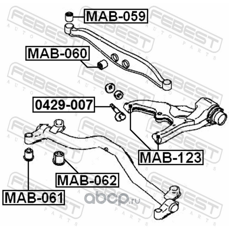 All World Cars - продажа С-б.зад.балки MITSUBISHI CHARIOT GRANDIS N80,90# 1997.08-2003.04 [JPN] артикул MAB061 по всей России и странах СНГ. Развитая сеть представительств с быстрой доставкой товаров бренда Febest и гарантией выгодной цены. Покупая в AWC товар Febest каталожный номер MAB061 вы бережете свое время, нервы и деньги.