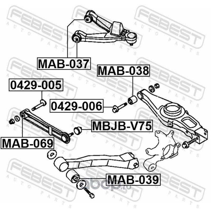 All World Cars - продажа Сайлентблок заднего поперечного рычага артикул MAB069 по всей России и странах СНГ. Развитая сеть представительств с быстрой доставкой товаров бренда Febest и гарантией выгодной цены. Покупая в AWC товар Febest каталожный номер MAB069 вы бережете свое время, нервы и деньги.