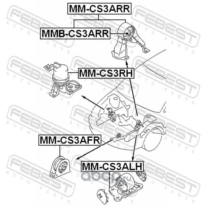All World Cars - продажа Подушка двигателя задняя артикул MMCS3ARR по всей России и странах СНГ. Развитая сеть представительств с быстрой доставкой товаров бренда Febest и гарантией выгодной цены. Покупая в AWC товар Febest каталожный номер MMCS3ARR вы бережете свое время, нервы и деньги.