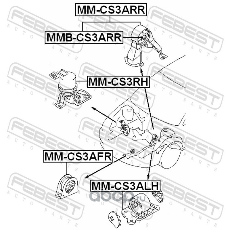 All World Cars - продажа Подушка двигателя правая артикул MMCS3RH по всей России и странах СНГ. Развитая сеть представительств с быстрой доставкой товаров бренда Febest и гарантией выгодной цены. Покупая в AWC товар Febest каталожный номер MMCS3RH вы бережете свое время, нервы и деньги.