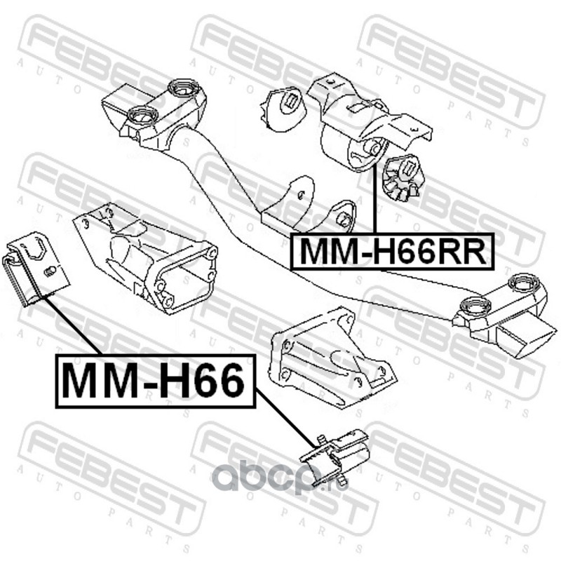All World Cars - продажа Подушка двигателя передняя артикул MMH66 по всей России и странах СНГ. Развитая сеть представительств с быстрой доставкой товаров бренда Febest и гарантией выгодной цены. Покупая в AWC товар Febest каталожный номер MMH66 вы бережете свое время, нервы и деньги.