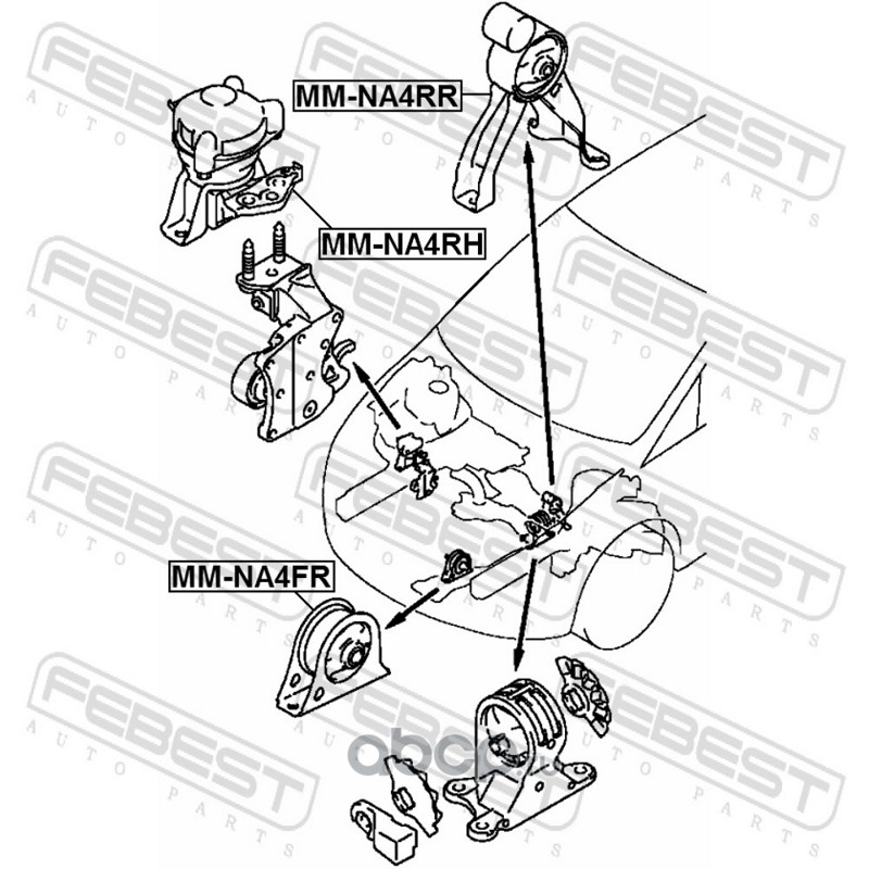 All World Cars - продажа Подушка двигателя правая (гидравлическая) артикул MMNA4RH по всей России и странах СНГ. Развитая сеть представительств с быстрой доставкой товаров бренда Febest и гарантией выгодной цены. Покупая в AWC товар Febest каталожный номер MMNA4RH вы бережете свое время, нервы и деньги.