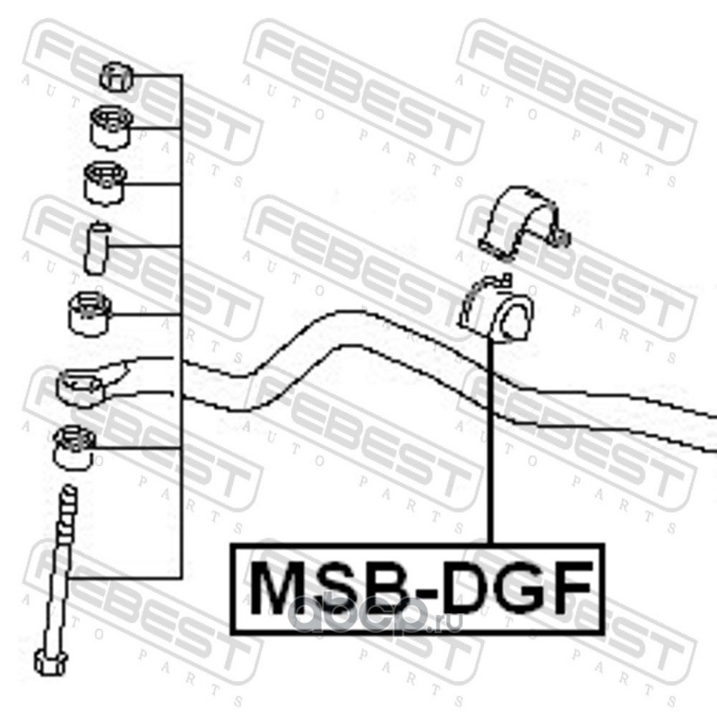 All World Cars - продажа Втулка переднего стабилизатора артикул MSBDGF по всей России и странах СНГ. Развитая сеть представительств с быстрой доставкой товаров бренда Febest и гарантией выгодной цены. Покупая в AWC товар Febest каталожный номер MSBDGF вы бережете свое время, нервы и деньги.