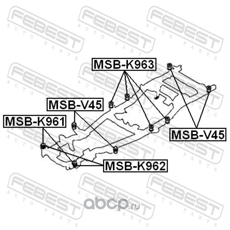 All World Cars - продажа Сайлентблок подрамника артикул MSBK963 по всей России и странах СНГ. Развитая сеть представительств с быстрой доставкой товаров бренда Febest и гарантией выгодной цены. Покупая в AWC товар Febest каталожный номер MSBK963 вы бережете свое время, нервы и деньги.