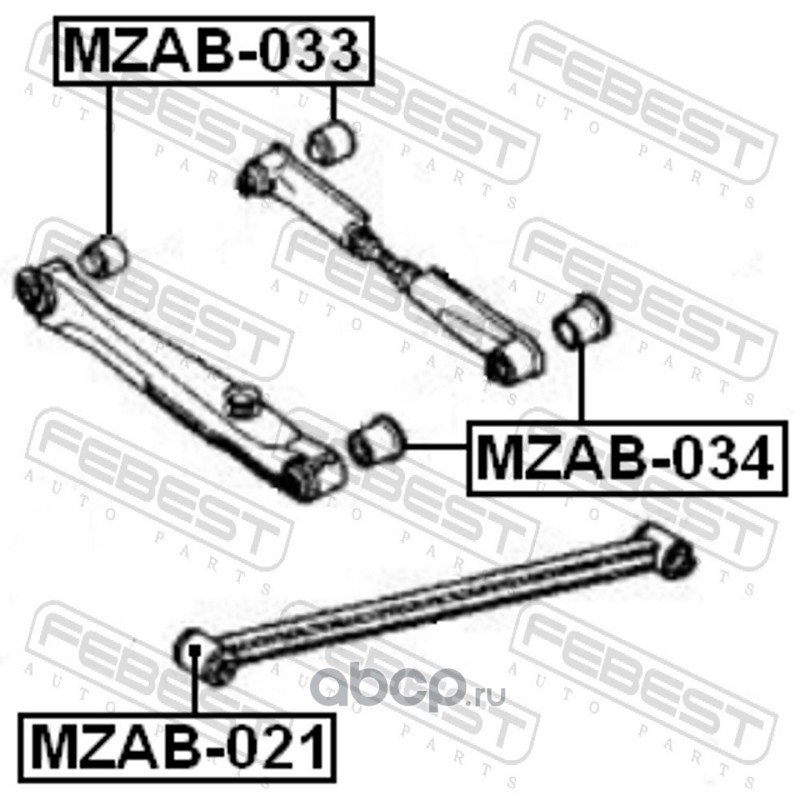 All World Cars - продажа Сайлентблок задней поперечной тяги артикул MZAB033 по всей России и странах СНГ. Развитая сеть представительств с быстрой доставкой товаров бренда Febest и гарантией выгодной цены. Покупая в AWC товар Febest каталожный номер MZAB033 вы бережете свое время, нервы и деньги.