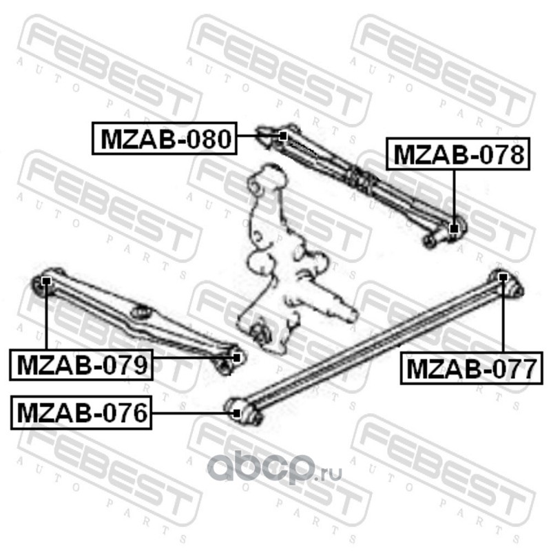 All World Cars - продажа Сайлентблок задней подвески артикул MZAB077 по всей России и странах СНГ. Развитая сеть представительств с быстрой доставкой товаров бренда Febest и гарантией выгодной цены. Покупая в AWC товар Febest каталожный номер MZAB077 вы бережете свое время, нервы и деньги.