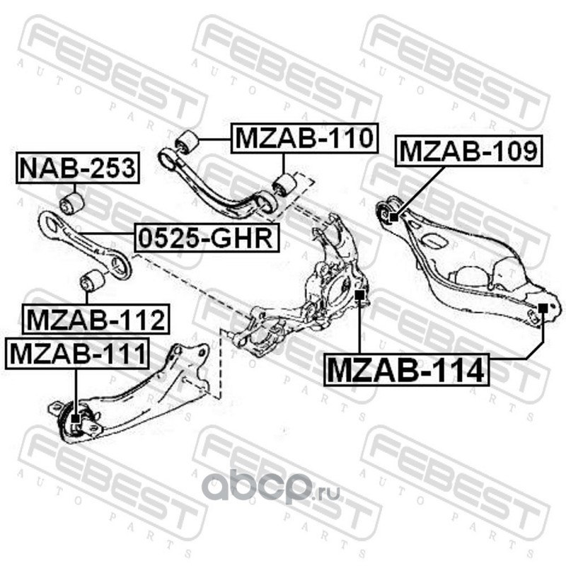 All World Cars - продажа Сайлентблок заднего продольного рычага артикул MZAB111 по всей России и странах СНГ. Развитая сеть представительств с быстрой доставкой товаров бренда Febest и гарантией выгодной цены. Покупая в AWC товар Febest каталожный номер MZAB111 вы бережете свое время, нервы и деньги.