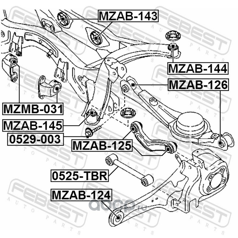 All World Cars - продажа Сайлентблок рычага подвески артикул MZAB124 по всей России и странах СНГ. Развитая сеть представительств с быстрой доставкой товаров бренда Febest и гарантией выгодной цены. Покупая в AWC товар Febest каталожный номер MZAB124 вы бережете свое время, нервы и деньги.