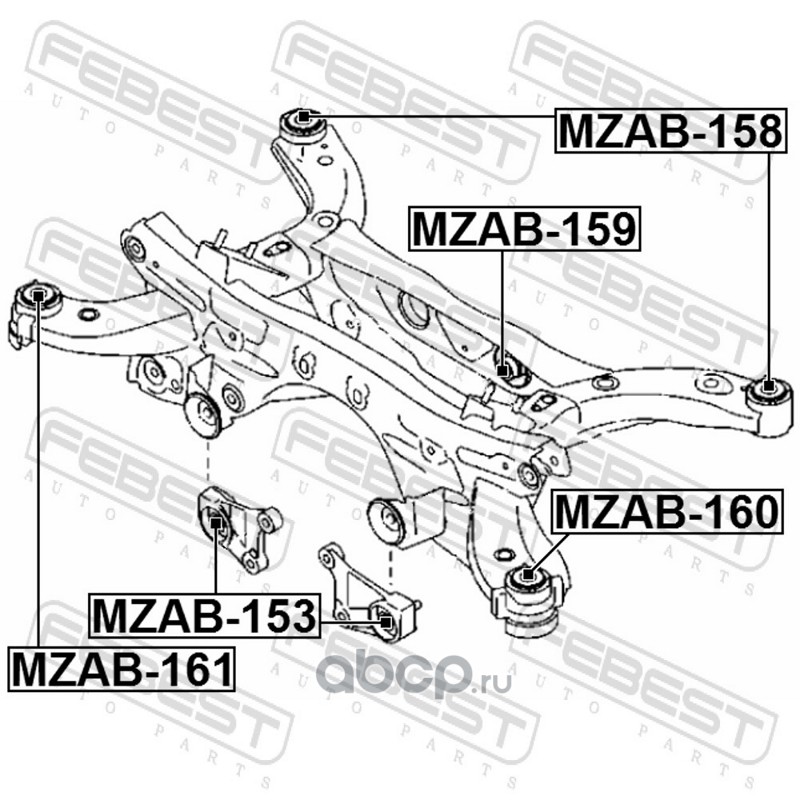 All World Cars - продажа Сайлентблок задней балки артикул MZAB159 по всей России и странах СНГ. Развитая сеть представительств с быстрой доставкой товаров бренда Febest и гарантией выгодной цены. Покупая в AWC товар Febest каталожный номер MZAB159 вы бережете свое время, нервы и деньги.