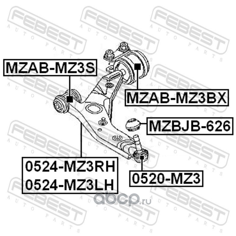 All World Cars - продажа Сайлентблок задний пер.рычага без кронштейна артикул MZABMZ3BX по всей России и странах СНГ. Развитая сеть представительств с быстрой доставкой товаров бренда Febest и гарантией выгодной цены. Покупая в AWC товар Febest каталожный номер MZABMZ3BX вы бережете свое время, нервы и деньги.
