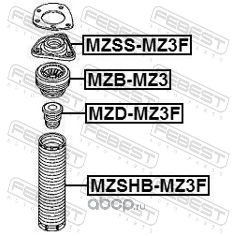 All World Cars - продажа Отбойник переднего амортизатора артикул MZDMZ3F по всей России и странах СНГ. Развитая сеть представительств с быстрой доставкой товаров бренда Febest и гарантией выгодной цены. Покупая в AWC товар Febest каталожный номер MZDMZ3F вы бережете свое время, нервы и деньги.
