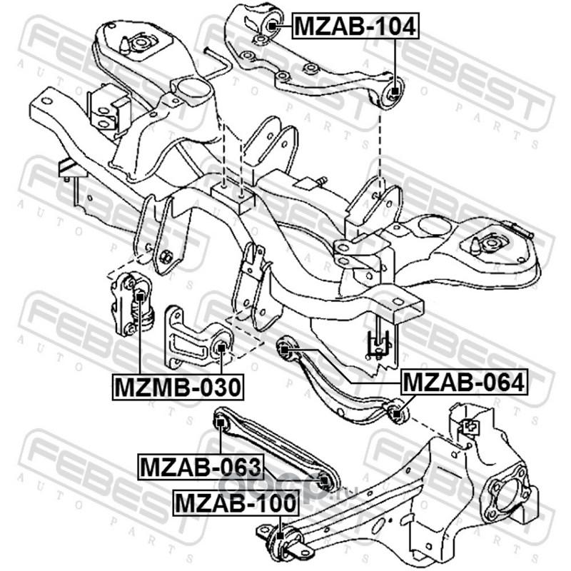 All World Cars - продажа Сайлентблок подушки дифференциала артикул MZMB030 по всей России и странах СНГ. Развитая сеть представительств с быстрой доставкой товаров бренда Febest и гарантией выгодной цены. Покупая в AWC товар Febest каталожный номер MZMB030 вы бережете свое время, нервы и деньги.