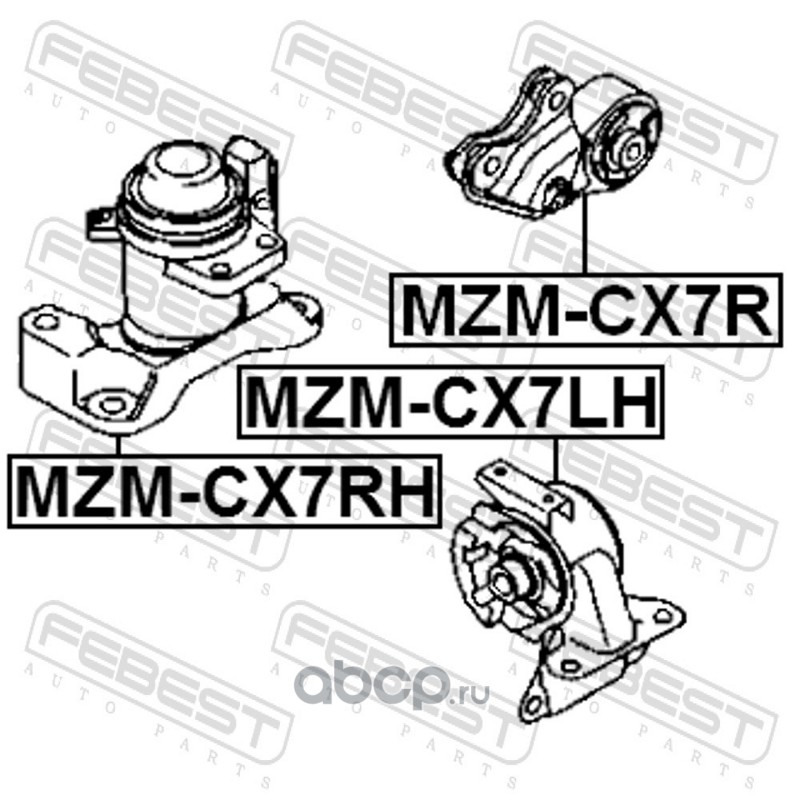 All World Cars - продажа Подушка двигателя правая артикул MZMCX7RH по всей России и странах СНГ. Развитая сеть представительств с быстрой доставкой товаров бренда Febest и гарантией выгодной цены. Покупая в AWC товар Febest каталожный номер MZMCX7RH вы бережете свое время, нервы и деньги.