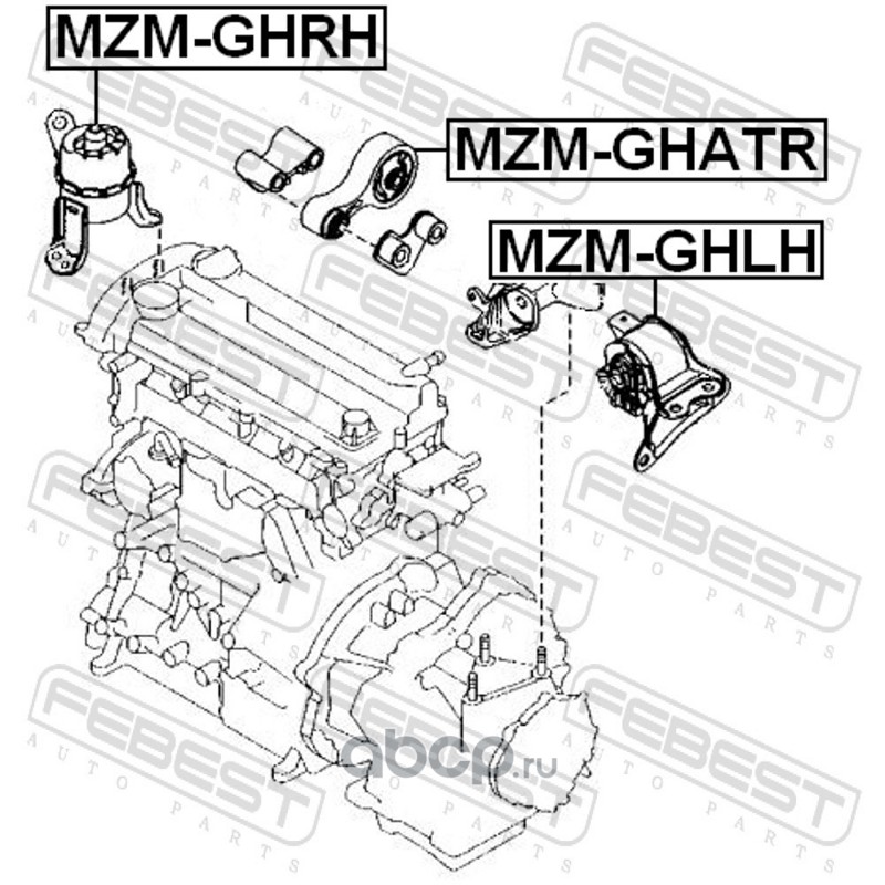 All World Cars - продажа Подушка ДВС левая артикул MZMGHLH по всей России и странах СНГ. Развитая сеть представительств с быстрой доставкой товаров бренда Febest и гарантией выгодной цены. Покупая в AWC товар Febest каталожный номер MZMGHLH вы бережете свое время, нервы и деньги.