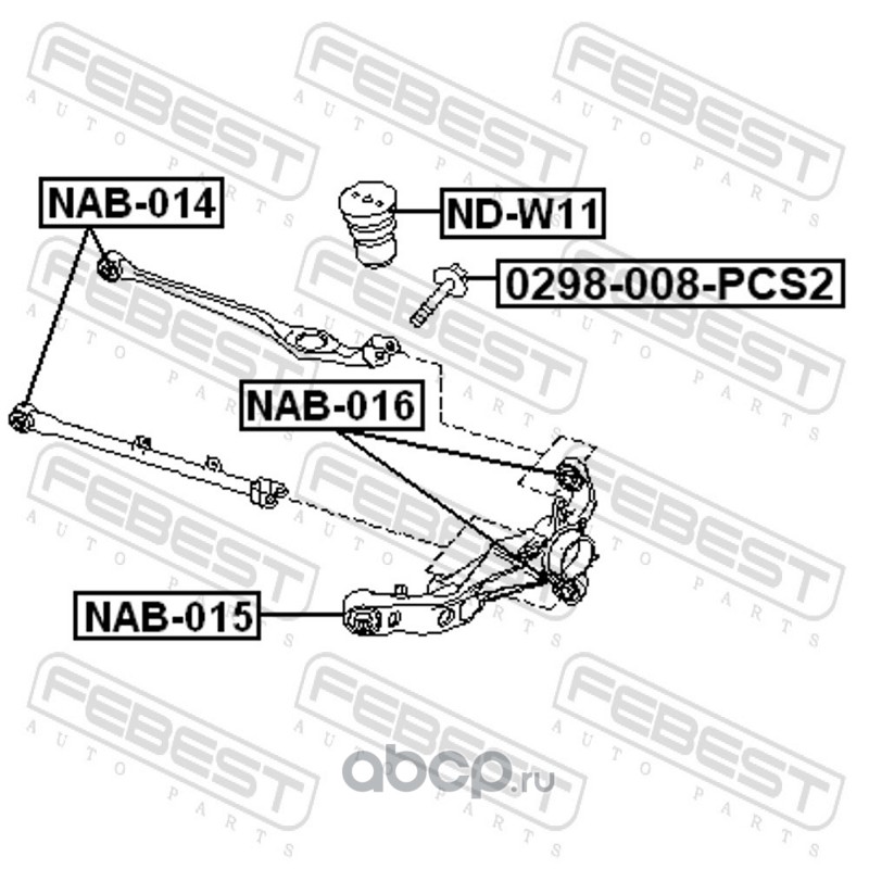 All World Cars - продажа Сайлентблок заднего рычага артикул NAB016 по всей России и странах СНГ. Развитая сеть представительств с быстрой доставкой товаров бренда Febest и гарантией выгодной цены. Покупая в AWC товар Febest каталожный номер NAB016 вы бережете свое время, нервы и деньги.