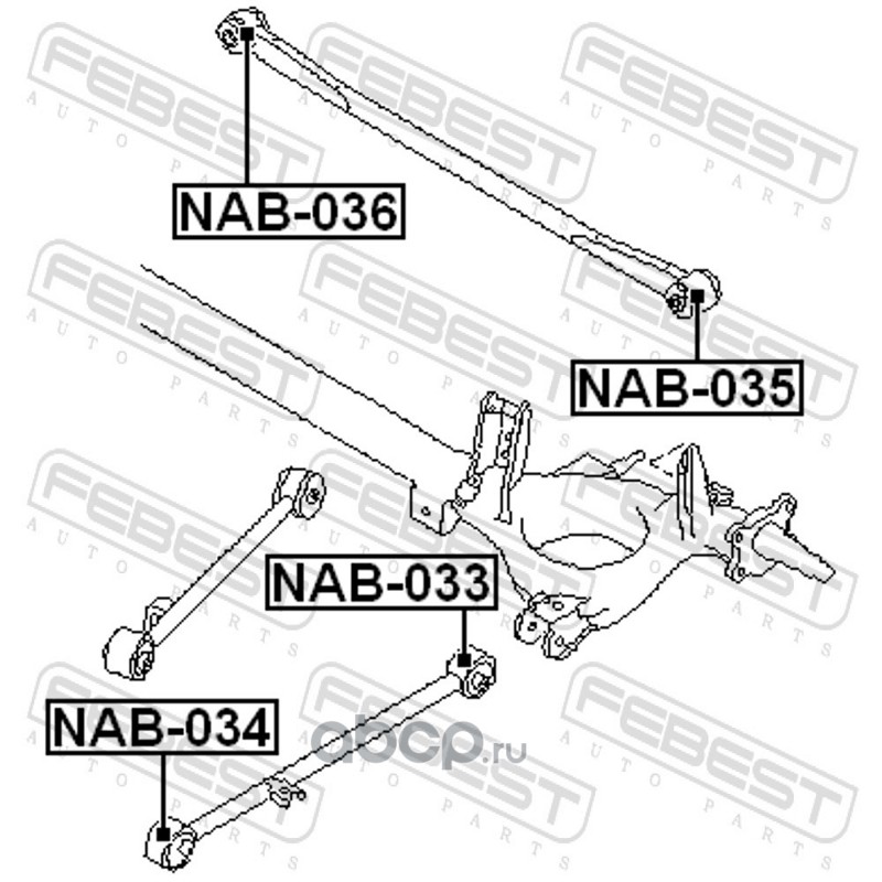 All World Cars - продажа Сайлентблок задний заднего продольного рычага артикул NAB033 по всей России и странах СНГ. Развитая сеть представительств с быстрой доставкой товаров бренда Febest и гарантией выгодной цены. Покупая в AWC товар Febest каталожный номер NAB033 вы бережете свое время, нервы и деньги.