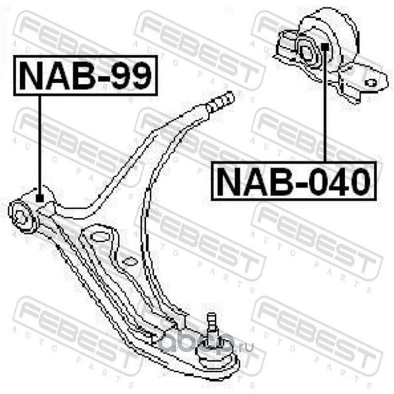 All World Cars - продажа Сайлетнблок переднего рычага задний (без обоймы) артикул NAB040 по всей России и странах СНГ. Развитая сеть представительств с быстрой доставкой товаров бренда Febest и гарантией выгодной цены. Покупая в AWC товар Febest каталожный номер NAB040 вы бережете свое время, нервы и деньги.