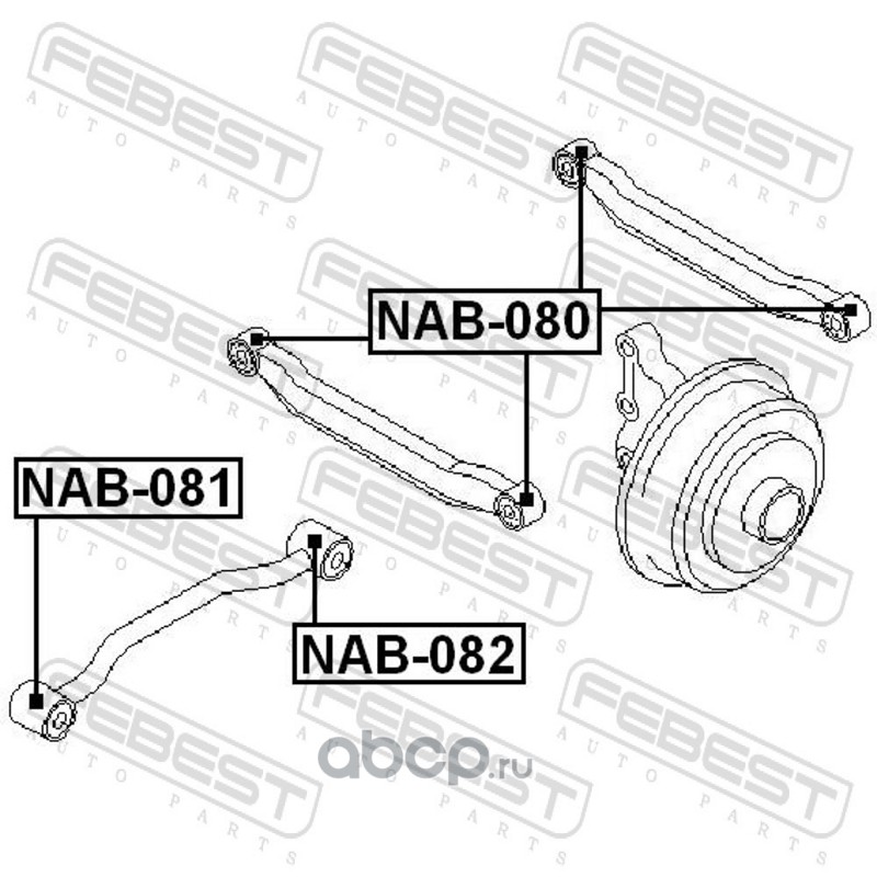 All World Cars - продажа Сайлентблок задний заднего продольного рычага артикул NAB082 по всей России и странах СНГ. Развитая сеть представительств с быстрой доставкой товаров бренда Febest и гарантией выгодной цены. Покупая в AWC товар Febest каталожный номер NAB082 вы бережете свое время, нервы и деньги.