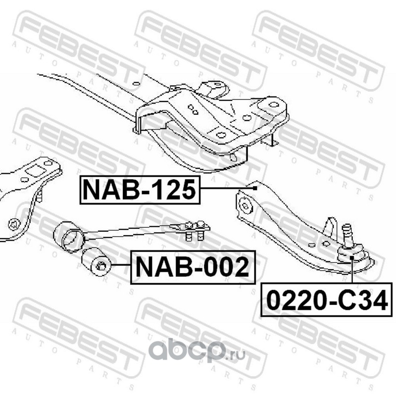 All World Cars - продажа Сайлентблок рычага подвески артикул NAB125 по всей России и странах СНГ. Развитая сеть представительств с быстрой доставкой товаров бренда Febest и гарантией выгодной цены. Покупая в AWC товар Febest каталожный номер NAB125 вы бережете свое время, нервы и деньги.