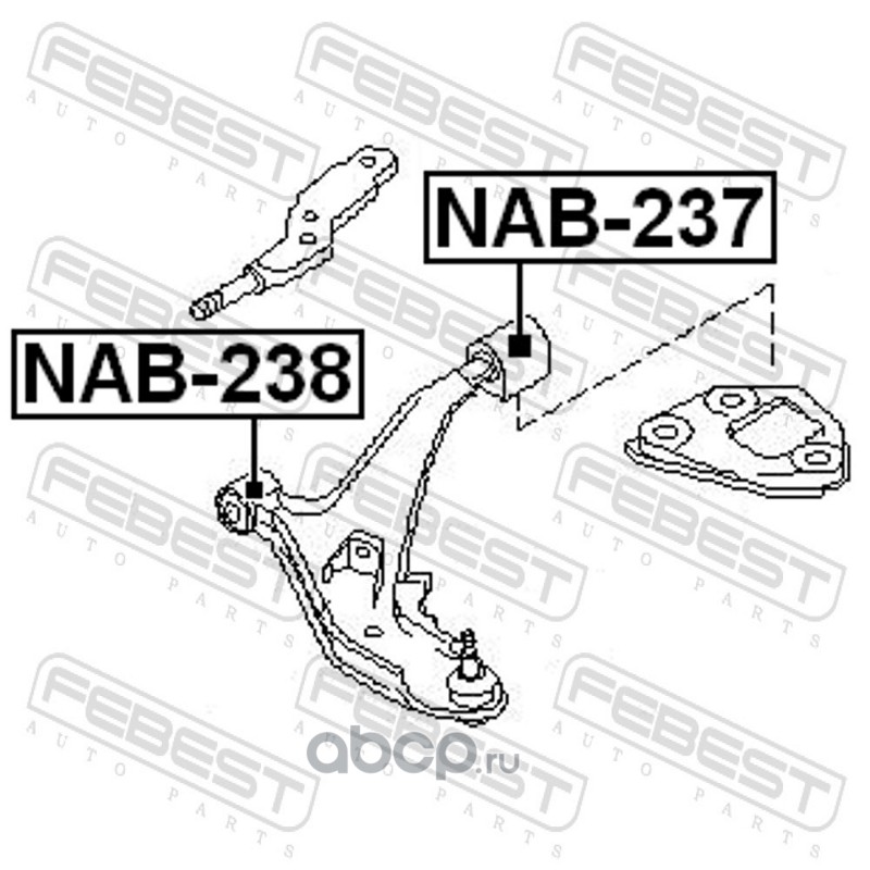 All World Cars - продажа Сайлентблок задний переднего рычага артикул NAB237 по всей России и странах СНГ. Развитая сеть представительств с быстрой доставкой товаров бренда Febest и гарантией выгодной цены. Покупая в AWC товар Febest каталожный номер NAB237 вы бережете свое время, нервы и деньги.