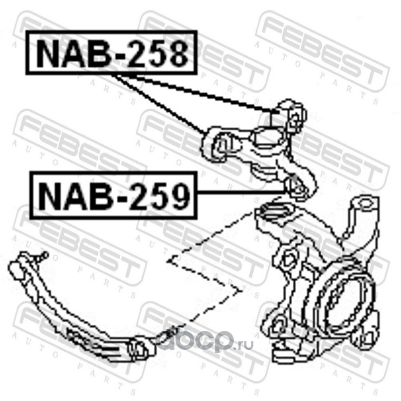 All World Cars - продажа с/б поворотного кулака артикул NAB258 по всей России и странах СНГ. Развитая сеть представительств с быстрой доставкой товаров бренда Febest и гарантией выгодной цены. Покупая в AWC товар Febest каталожный номер NAB258 вы бережете свое время, нервы и деньги.