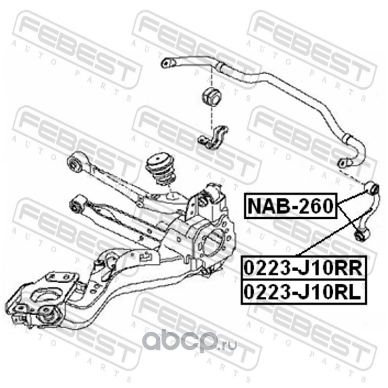 All World Cars - продажа Сайлентблок задней тяги артикул NAB260 по всей России и странах СНГ. Развитая сеть представительств с быстрой доставкой товаров бренда Febest и гарантией выгодной цены. Покупая в AWC товар Febest каталожный номер NAB260 вы бережете свое время, нервы и деньги.