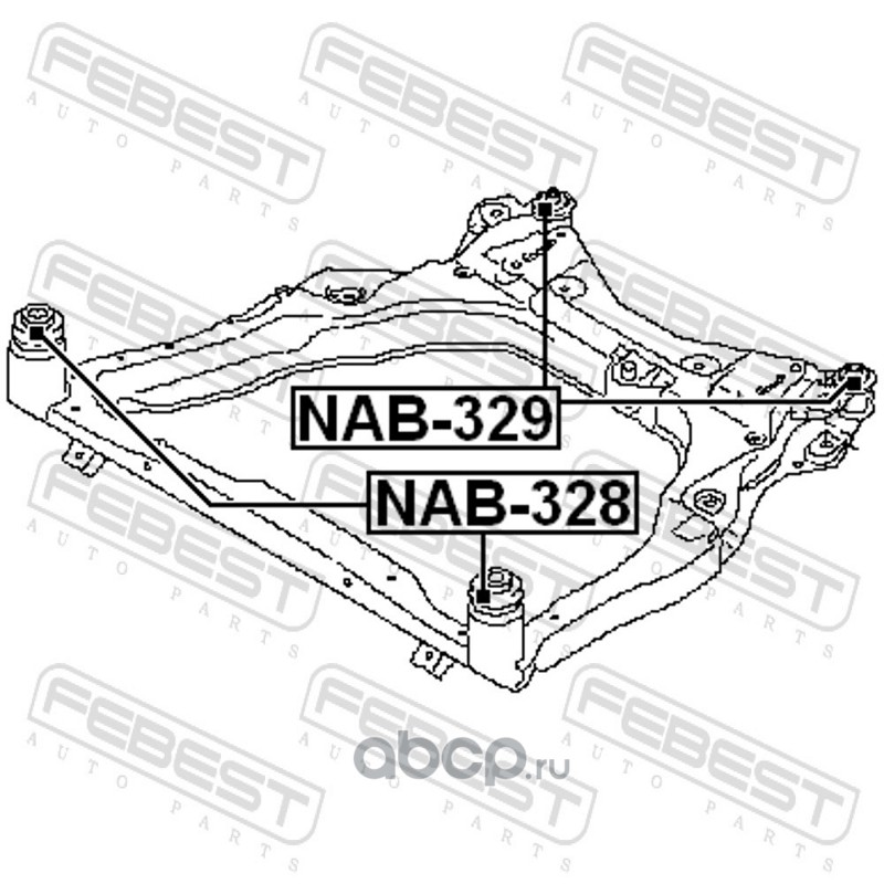 All World Cars - продажа Сайлентблок подрамника передний артикул NAB328 по всей России и странах СНГ. Развитая сеть представительств с быстрой доставкой товаров бренда Febest и гарантией выгодной цены. Покупая в AWC товар Febest каталожный номер NAB328 вы бережете свое время, нервы и деньги.