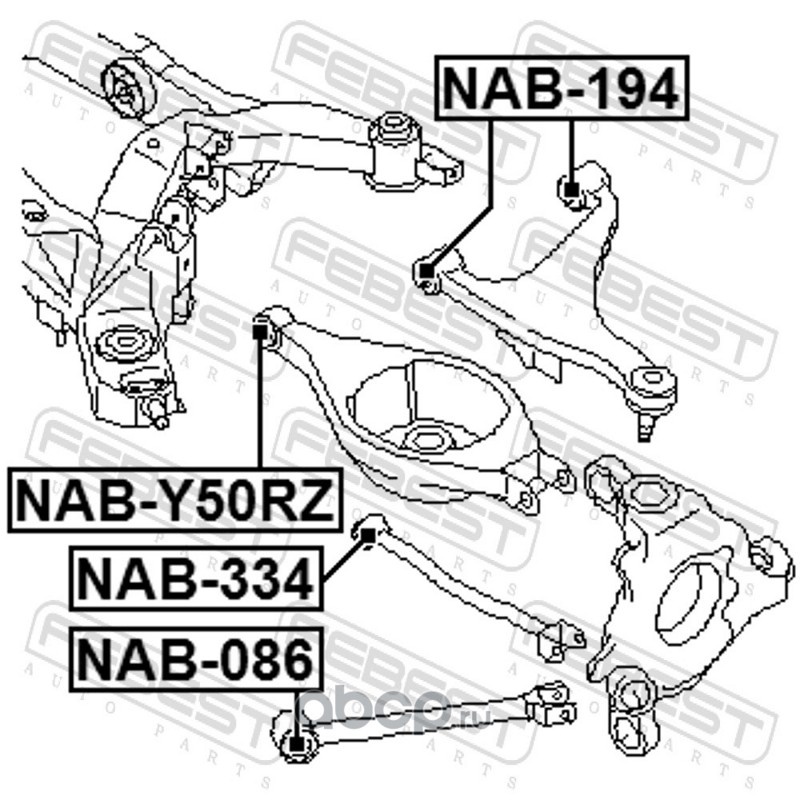 All World Cars - продажа Сайлентблок задней поперечной тяги артикул NAB334 по всей России и странах СНГ. Развитая сеть представительств с быстрой доставкой товаров бренда Febest и гарантией выгодной цены. Покупая в AWC товар Febest каталожный номер NAB334 вы бережете свое время, нервы и деньги.