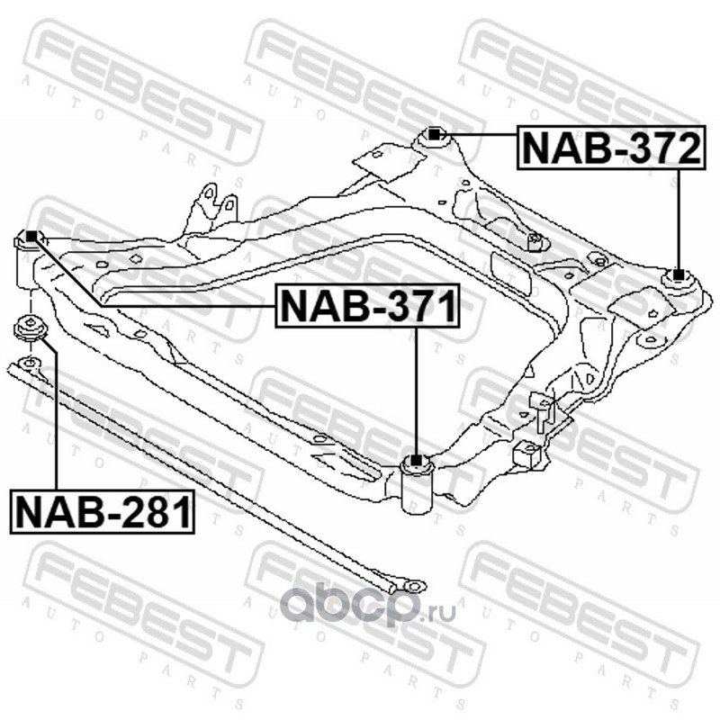 All World Cars - продажа Сайлентблок подрамника артикул NAB371 по всей России и странах СНГ. Развитая сеть представительств с быстрой доставкой товаров бренда Febest и гарантией выгодной цены. Покупая в AWC товар Febest каталожный номер NAB371 вы бережете свое время, нервы и деньги.