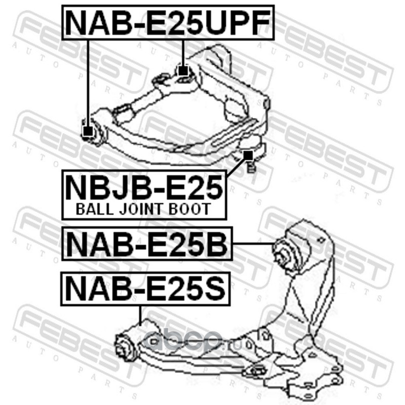 All World Cars - продажа Сайлентблок задний переднего нижнего рычага артикул NABE25B по всей России и странах СНГ. Развитая сеть представительств с быстрой доставкой товаров бренда Febest и гарантией выгодной цены. Покупая в AWC товар Febest каталожный номер NABE25B вы бережете свое время, нервы и деньги.