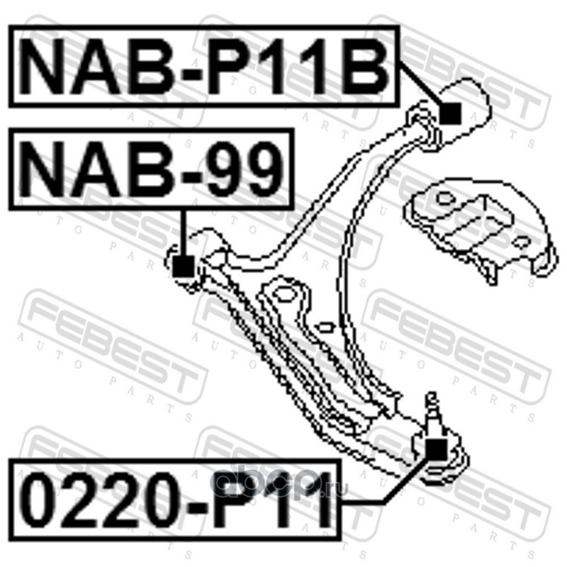 All World Cars - продажа Сайлентблок задний переднего нижнего рычага артикул NABP11B по всей России и странах СНГ. Развитая сеть представительств с быстрой доставкой товаров бренда Febest и гарантией выгодной цены. Покупая в AWC товар Febest каталожный номер NABP11B вы бережете свое время, нервы и деньги.