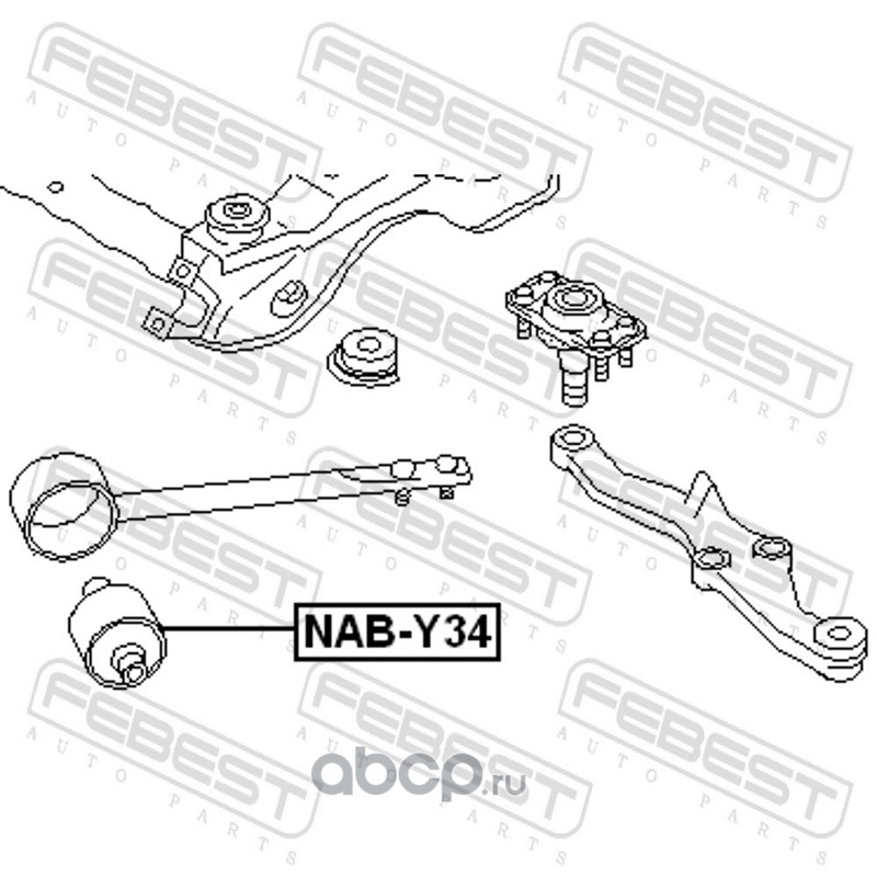 All World Cars - продажа Сайлентблок переднего торсиона (гидравлический) артикул NABY34 по всей России и странах СНГ. Развитая сеть представительств с быстрой доставкой товаров бренда Febest и гарантией выгодной цены. Покупая в AWC товар Febest каталожный номер NABY34 вы бережете свое время, нервы и деньги.