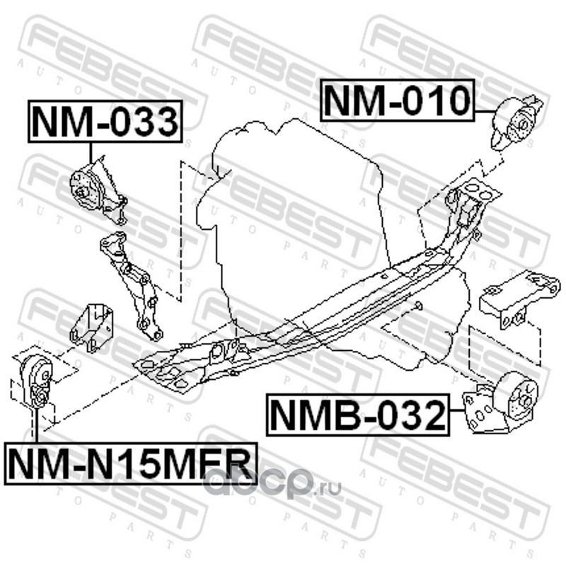 All World Cars - продажа Подушка двигателя задняя артикул NM010 по всей России и странах СНГ. Развитая сеть представительств с быстрой доставкой товаров бренда Febest и гарантией выгодной цены. Покупая в AWC товар Febest каталожный номер NM010 вы бережете свое время, нервы и деньги.