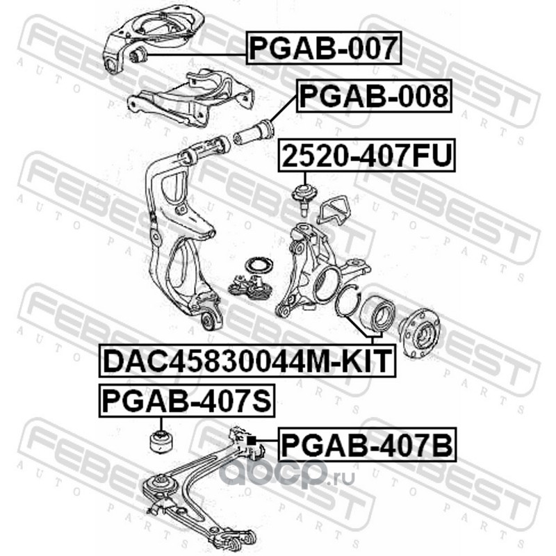 All World Cars - продажа Сайлентблок задний переднего нижнего рычага артикул PGAB407B по всей России и странах СНГ. Развитая сеть представительств с быстрой доставкой товаров бренда Febest и гарантией выгодной цены. Покупая в AWC товар Febest каталожный номер PGAB407B вы бережете свое время, нервы и деньги.