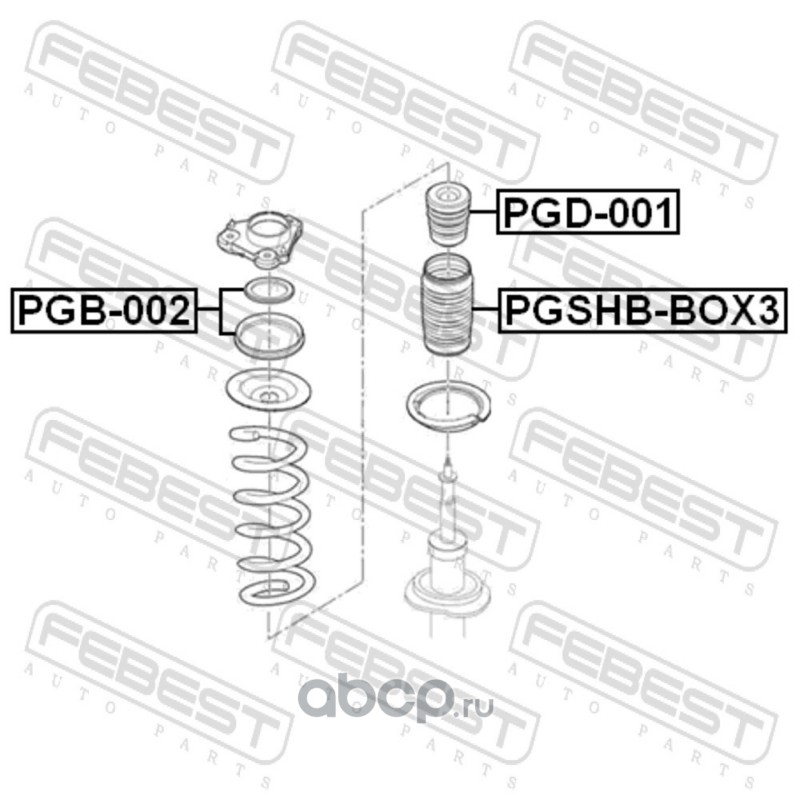 All World Cars - продажа Пыльник переднего амортизатора артикул PGSHBBOX3 по всей России и странах СНГ. Развитая сеть представительств с быстрой доставкой товаров бренда Febest и гарантией выгодной цены. Покупая в AWC товар Febest каталожный номер PGSHBBOX3 вы бережете свое время, нервы и деньги.