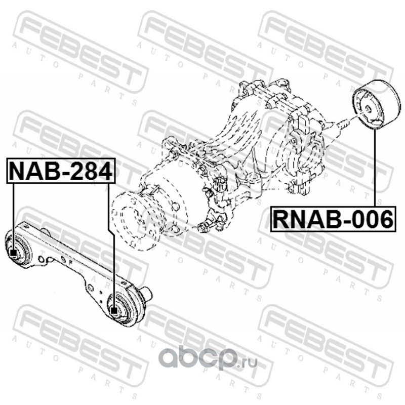 All World Cars - продажа Сайлентблок заднего дифференциала артикул RNAB006 по всей России и странах СНГ. Развитая сеть представительств с быстрой доставкой товаров бренда Febest и гарантией выгодной цены. Покупая в AWC товар Febest каталожный номер RNAB006 вы бережете свое время, нервы и деньги.