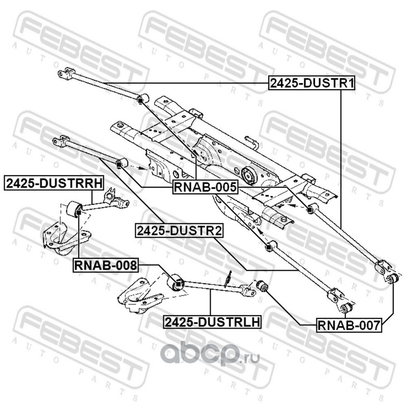 All World Cars - продажа Сайлентблок задней цафпы артикул RNAB007 по всей России и странах СНГ. Развитая сеть представительств с быстрой доставкой товаров бренда Febest и гарантией выгодной цены. Покупая в AWC товар Febest каталожный номер RNAB007 вы бережете свое время, нервы и деньги.