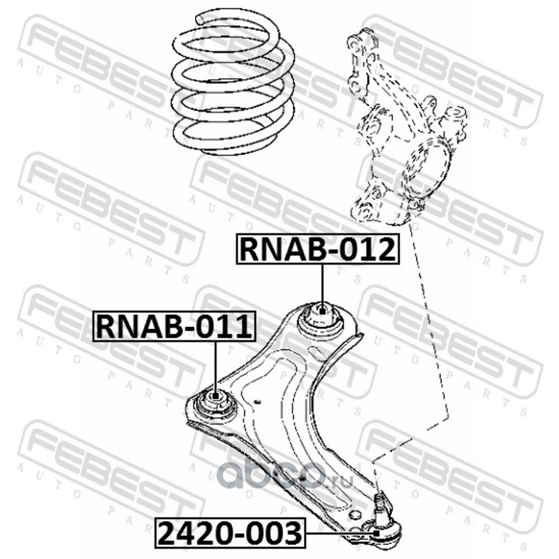 All World Cars - продажа Сайлентблок переднего нижнего рычага артикул RNAB012 по всей России и странах СНГ. Развитая сеть представительств с быстрой доставкой товаров бренда Febest и гарантией выгодной цены. Покупая в AWC товар Febest каталожный номер RNAB012 вы бережете свое время, нервы и деньги.