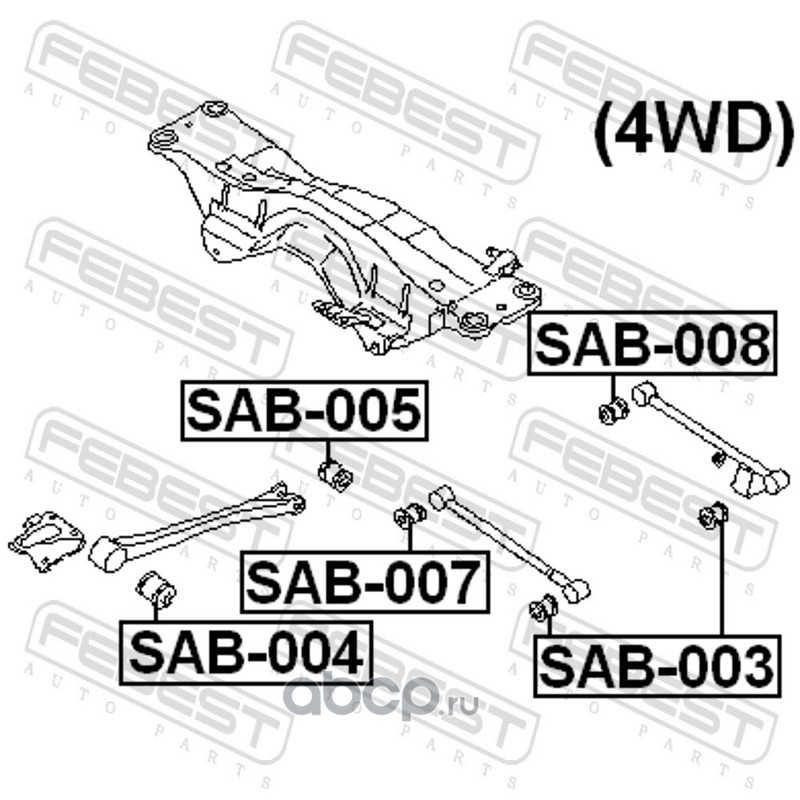All World Cars - продажа С-б.зад.поперечн.рычага SUBARU IMPREZA G10 92-02 артикул SAB007 по всей России и странах СНГ. Развитая сеть представительств с быстрой доставкой товаров бренда Febest и гарантией выгодной цены. Покупая в AWC товар Febest каталожный номер SAB007 вы бережете свое время, нервы и деньги.