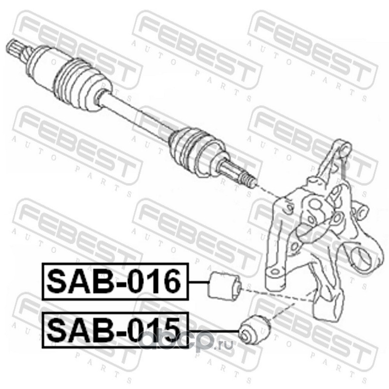All World Cars - продажа Сайлентблок поворотного кулака артикул SAB016 по всей России и странах СНГ. Развитая сеть представительств с быстрой доставкой товаров бренда Febest и гарантией выгодной цены. Покупая в AWC товар Febest каталожный номер SAB016 вы бережете свое время, нервы и деньги.