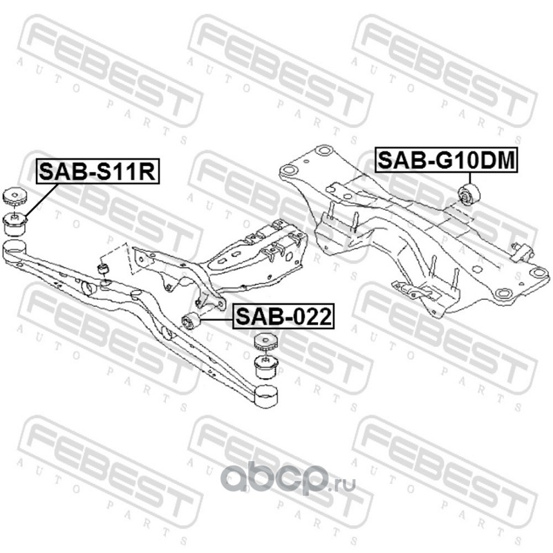 All World Cars - продажа Сайлентблок задней балки SUBARU FORESTER 01-07 артикул SAB022 по всей России и странах СНГ. Развитая сеть представительств с быстрой доставкой товаров бренда Febest и гарантией выгодной цены. Покупая в AWC товар Febest каталожный номер SAB022 вы бережете свое время, нервы и деньги.